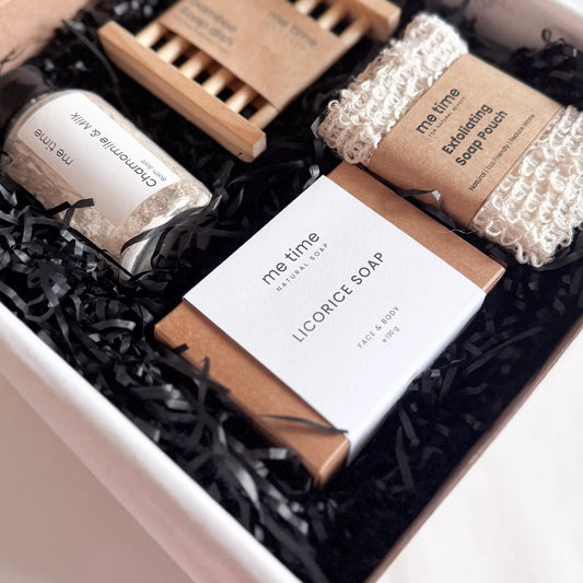 At Me Time Soaps, your satisfaction and the environment come first. That’s why we use recycled brown kraft paper and boxes for all our gift packaging. This not only ensures your gift arrives in perfect condition but also reduces waste and keeps the planet clean.
